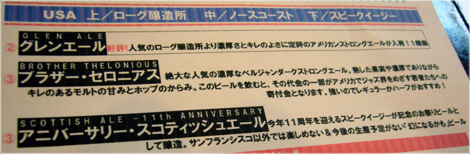 あ、3つのビールの説明書きを載せておくので