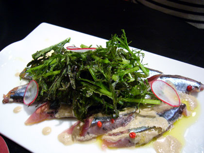 みじん切りのにんにくとハーブソルトで風味付けしてグラッパで軽く煮込み、バルサミコ酢で仕上げ。