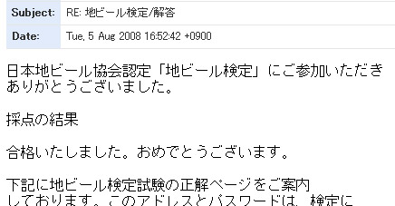 結果は数日後にメールで知らされるということで待っていたらさっき届きました。