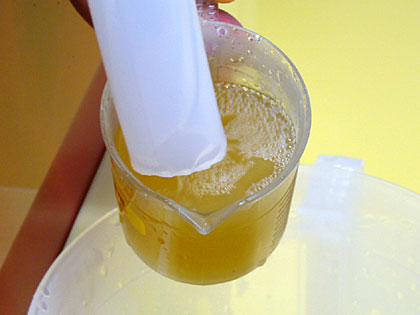 沈殿した麦芽のかすが踊らないようにゆっくりね。